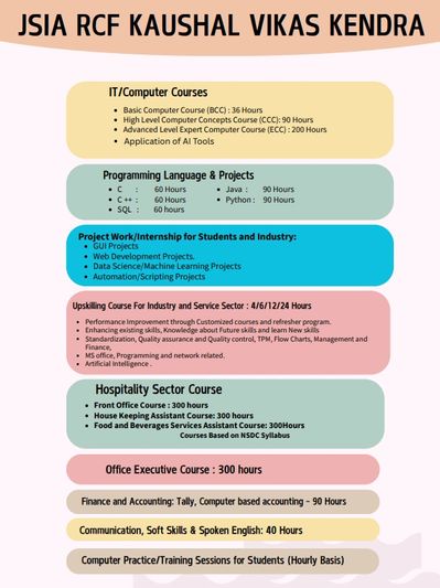 A joint initiative of Jharkhand Small Industries Association JSIA and Rajrappa Charitable Foundation (RCF) to provide skill development to the youth of Jharkhand and adjoining areas.